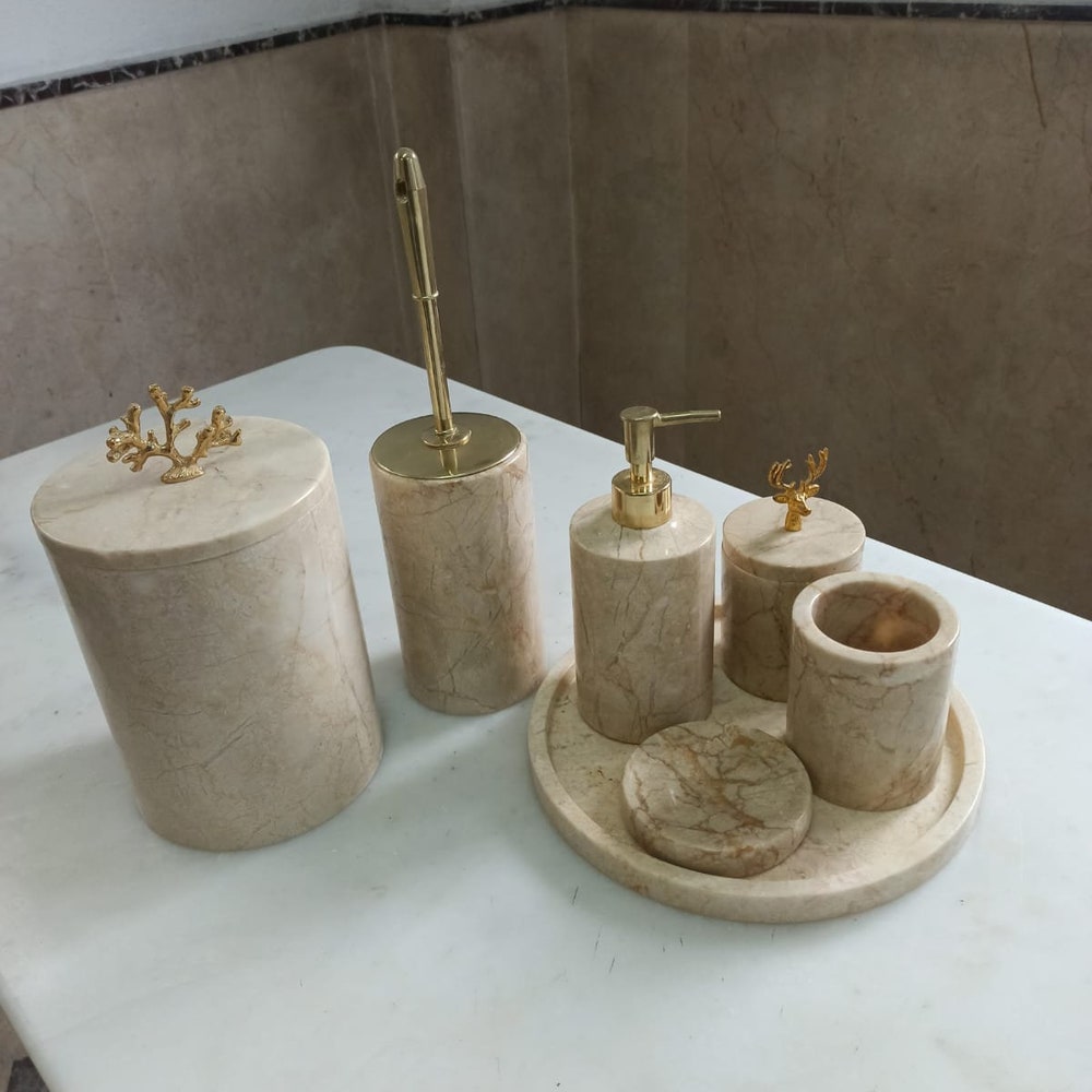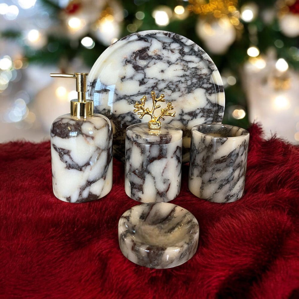 Marble Bathroom Set & Accessories 5 Pieces, Luxury Home Decor, Marble Bathroom Set, Calacatta Viola Marble / White Marble Set, Home Gifts