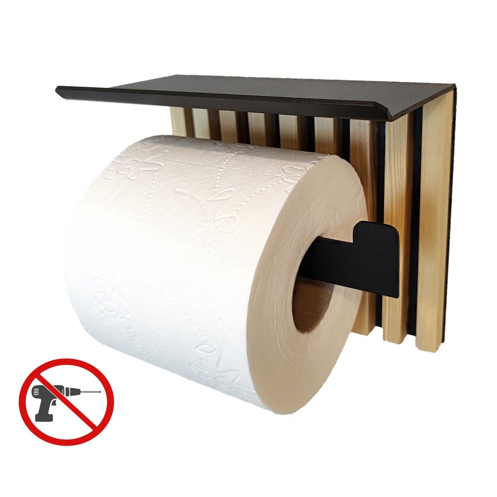 Metal & Wood Toilet Paper holder, Minimalist Bathroom Shelf, Metal Decor, Installation without drilling, Toilet Paper hanger, Wooden slats