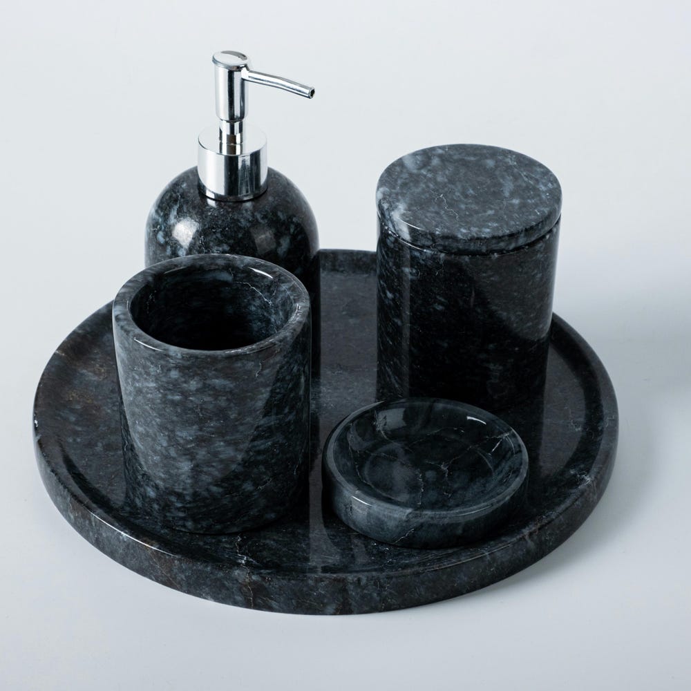 Marble Bathroom Set, Natural Marble 5-Pieces Vanity Accessories, Bathroom Organization Marble Set, Black Marble Vanity Decor, Marble Tray
