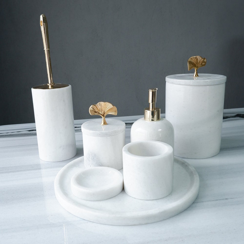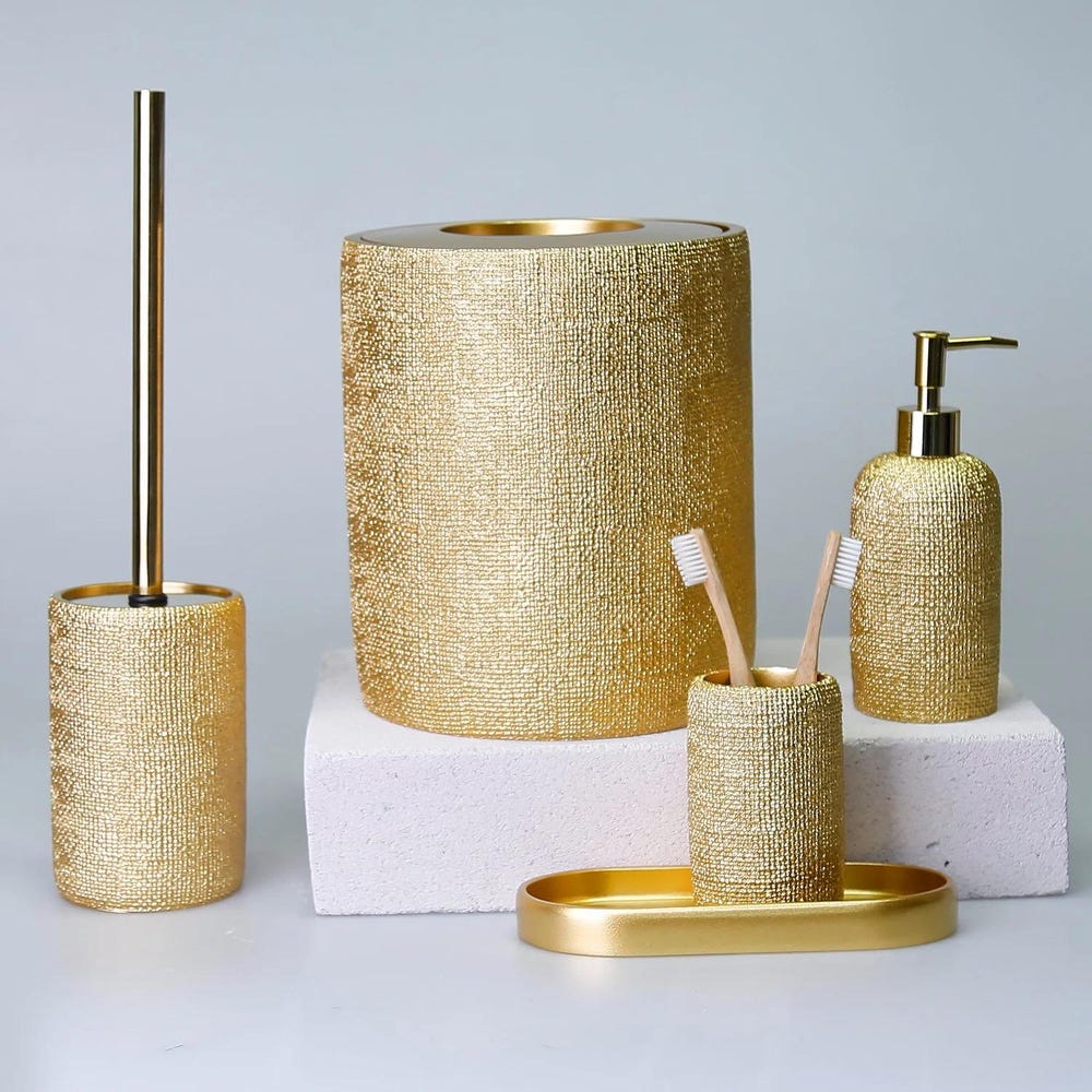 Natural Luxury Bathroom Accessories Sets with Trash Can, Toilet Brush, Soap Dispenser, Toothbrush Holder, Tray / Gold Bathroom Accessories