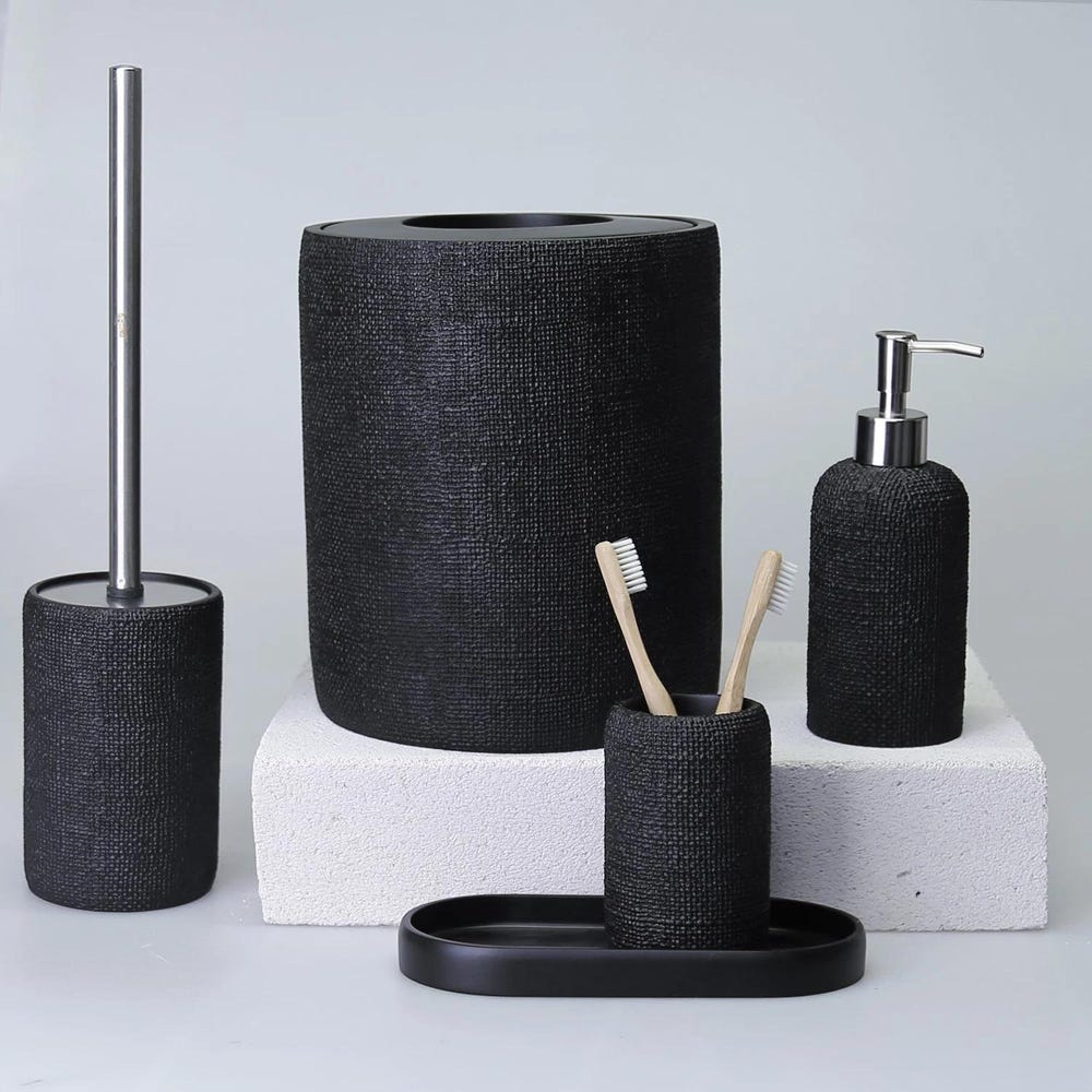 Natural Luxury Bathroom Accessories Sets with Trash Can, Toilet Brush, Soap Dispenser, Toothbrush Holder, Tray / Black Bathroom Accessories