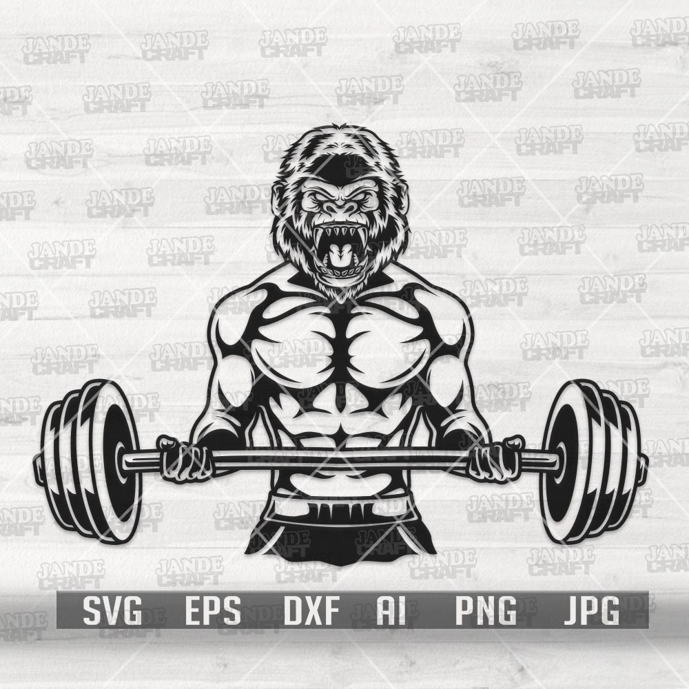 Ape Body Builder svg | Weight Lifter Clipart | Strong Muscle Man Cut File | Fitness Coach Gift Idea T-shirt Design png| Workout Physique dxf