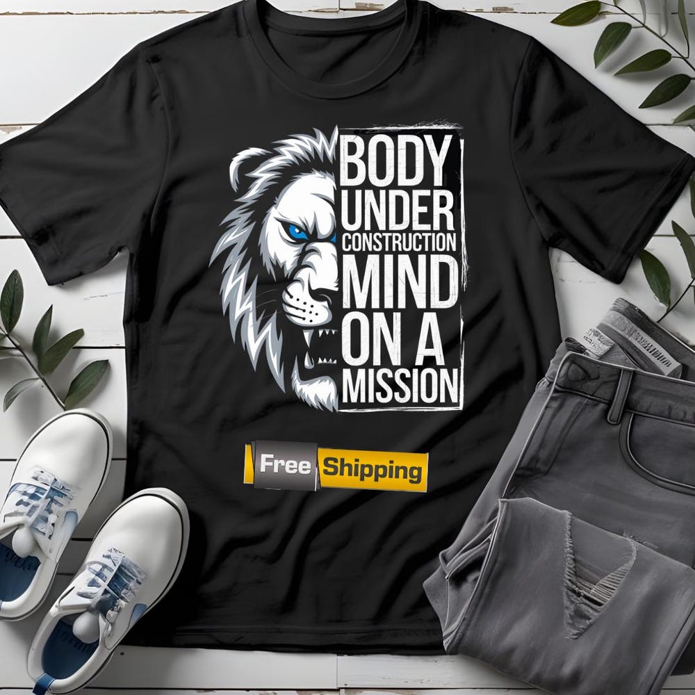 Motivational Lion Graphic Tee: Body Under Construction Fitness Shirt for Gym Workouts