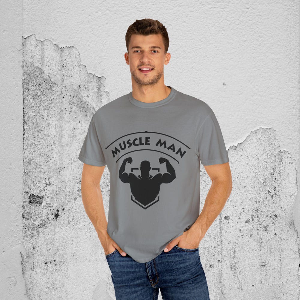 Muscle Man Unisex Garment-Dyed T-shirt, Fitness Tee, Gym Shirt, Bodybuilding Apparel, Gift for Workout Enthusiasts, Casual Wear
