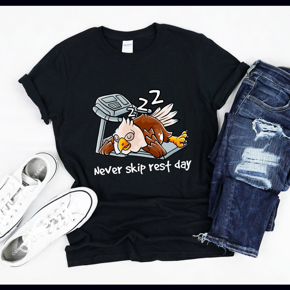 Never Skip Rest Day | Sleeping American Bald Eagle | Fitness Body Building | Gym Work Out Gift | T-Shirt | Tank Top | Sweatshirt | Hoodie