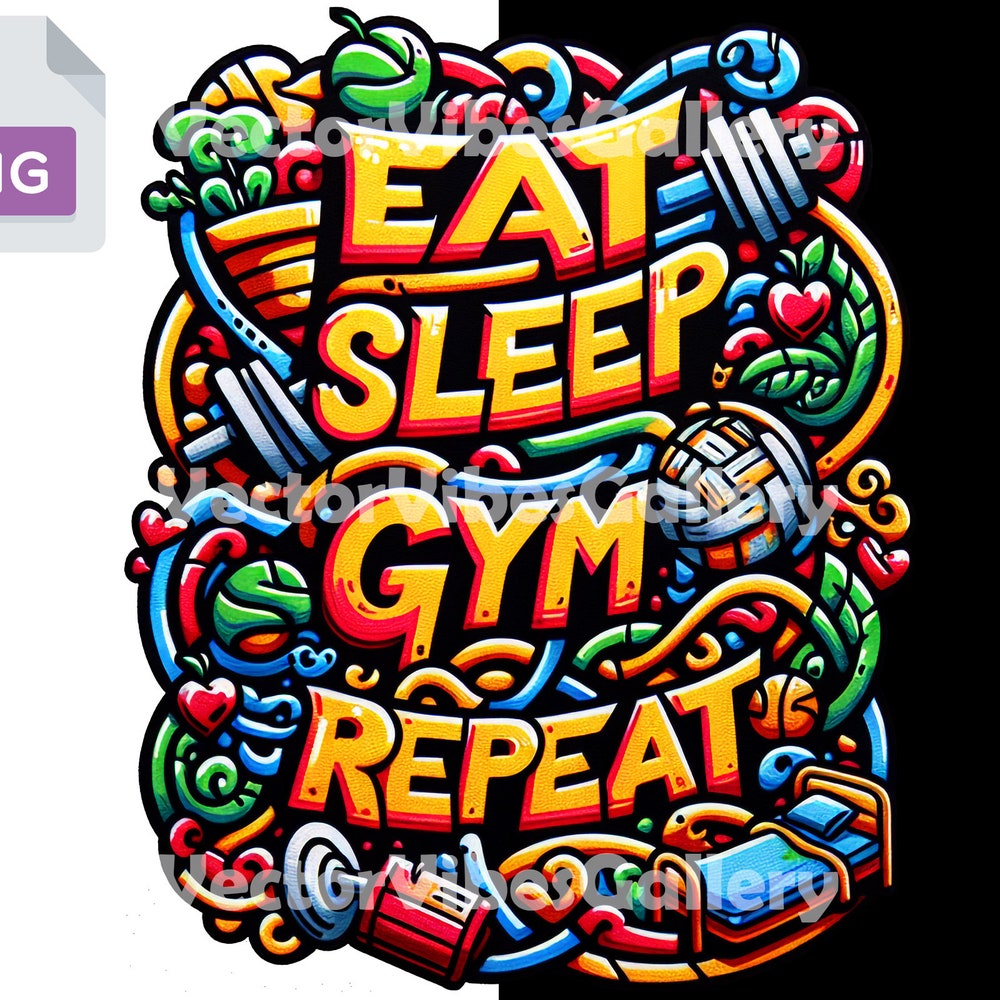 Eat Sleep Gym Repeat Png, Urban Sublimation Design, Graffiti Clipart, Bodybuilding Poster, digital fitness, Transparent Background, 300 DPI