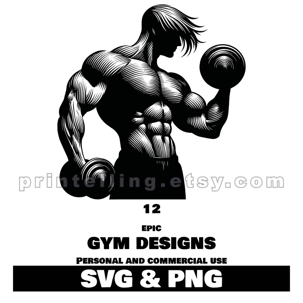 Epic Gym Workout SVG & PNG Bundle, 12 Clipart Images to Design Shirts, Ads, Merch, Branding and More for Fitness and Bodybuilding Community