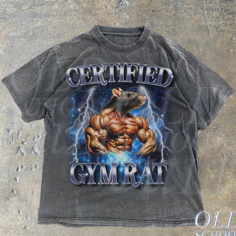 Certified Gym Rat Funny Vintage 90s Style T-Shirt, Unisex Retro Gym Graphic Tee, Pump Cover Rat Shirt, Gym Lovers Gift, Funny Gym Meme Shirt