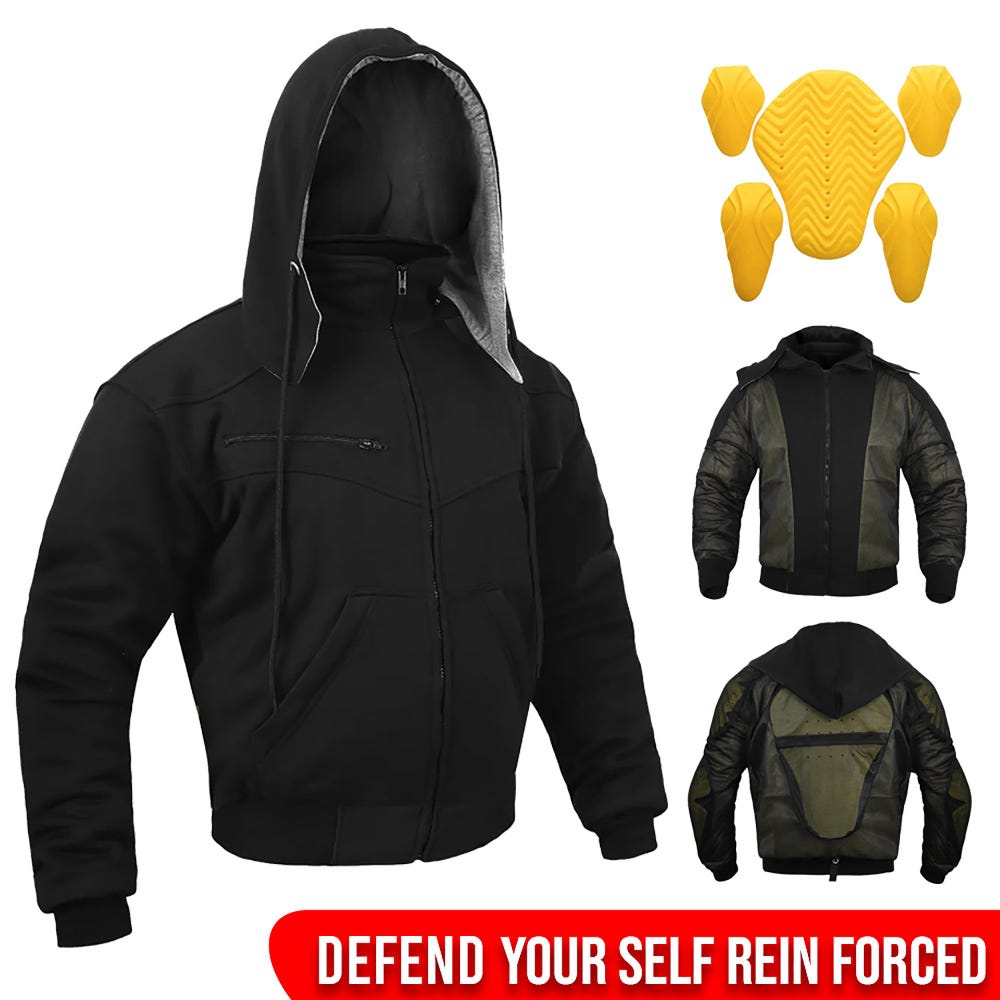 Armored Motorcycle Hoodie with Kevlar Heavy Duty Protective Biker Hoodie CE Certified Kevlar Lined Riding Hoodies
