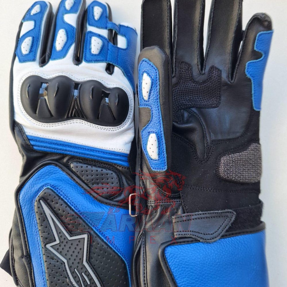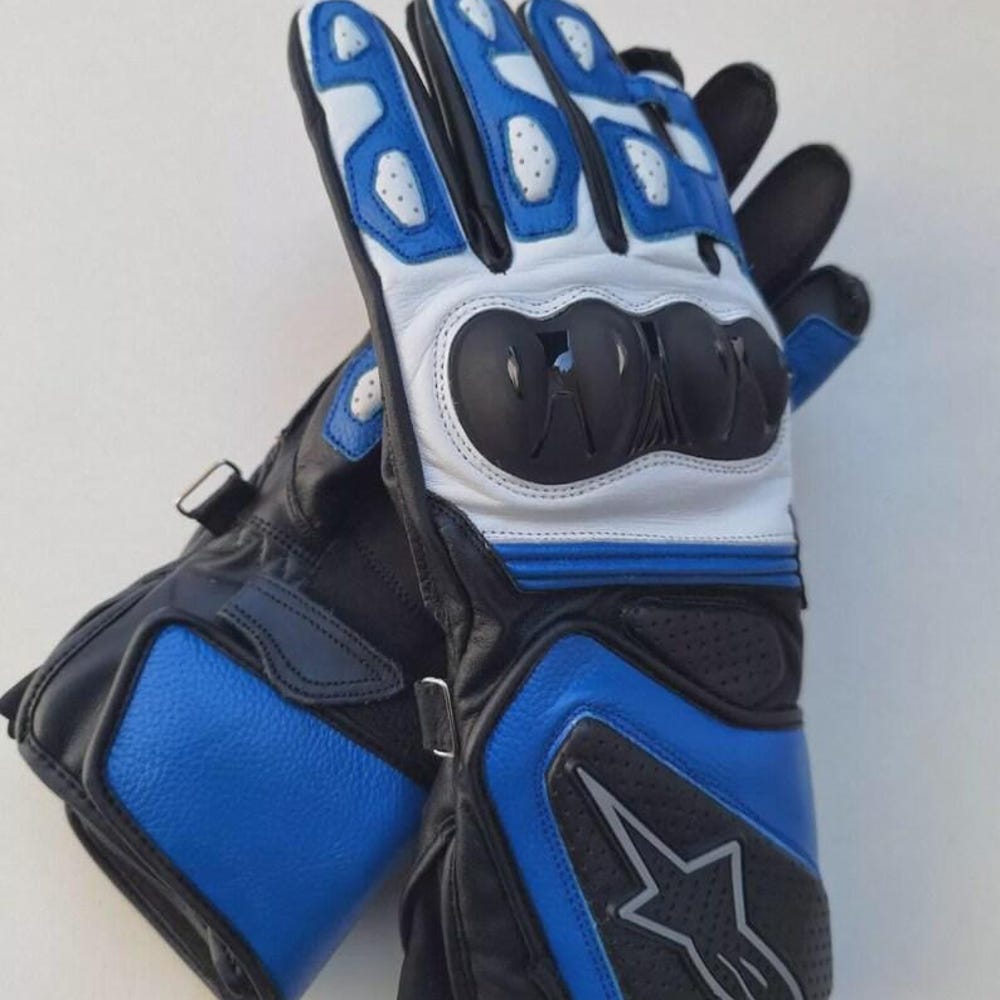 Alpinestars Motorcycle Racing Gloves Blue Black Leather Protective Motorbike Gloves with Knuckle Armor for Biker Riding and Racing