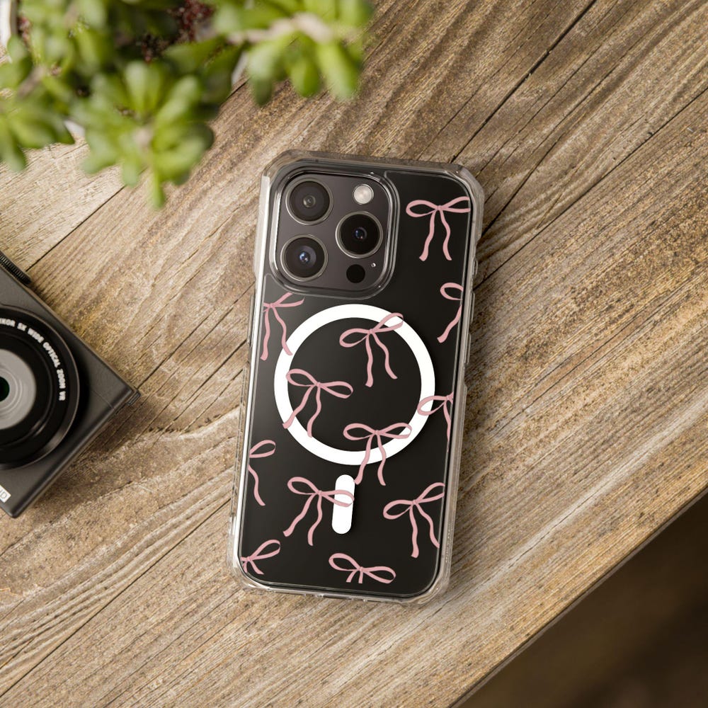 Chic Magnetic Clear Impact Case with Pink Bow Design, Phone Case, Gift for Her, Fashion Accessory, Protective Case, Trendy Phone Cover