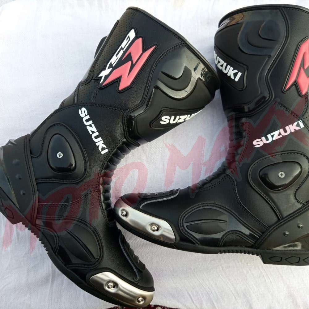 Handmade Motorbike Boots, Custom Made Suzuki GSXR Motorbike Racing Riding Leather Boots, Biker Cafe Racer Motorcycle Boots