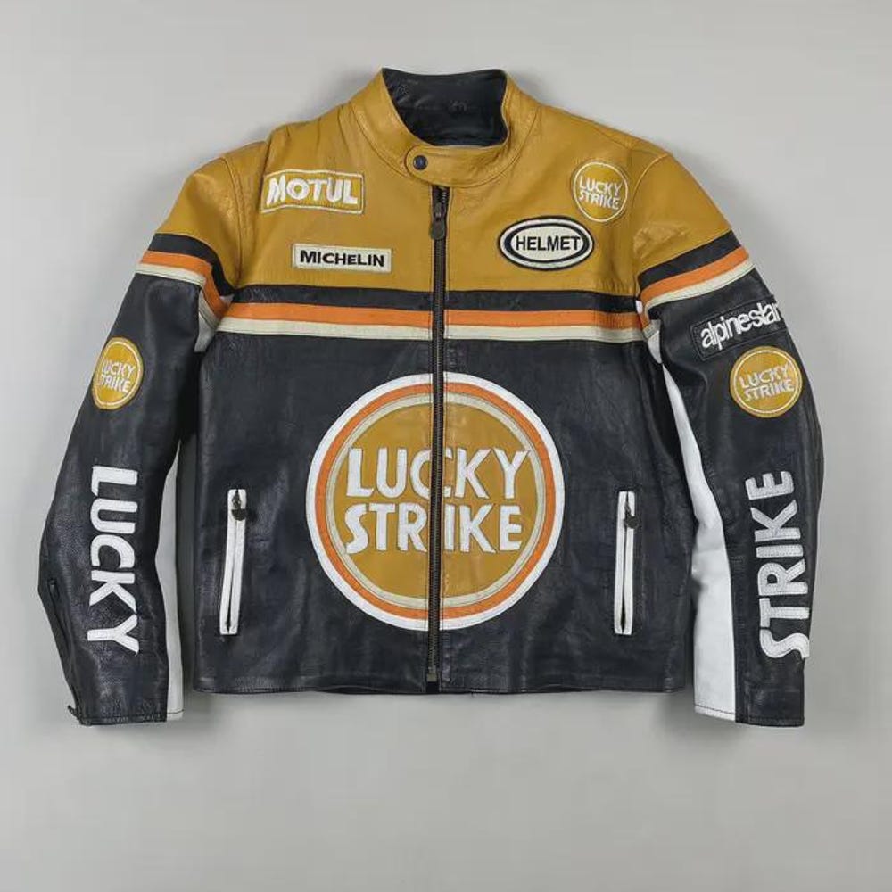 Handmade Lucky Strike Racing Leather Jacket, Classic Biker Gear, High-Quality Leather Jacket, Stylish & Durable Protective Gear