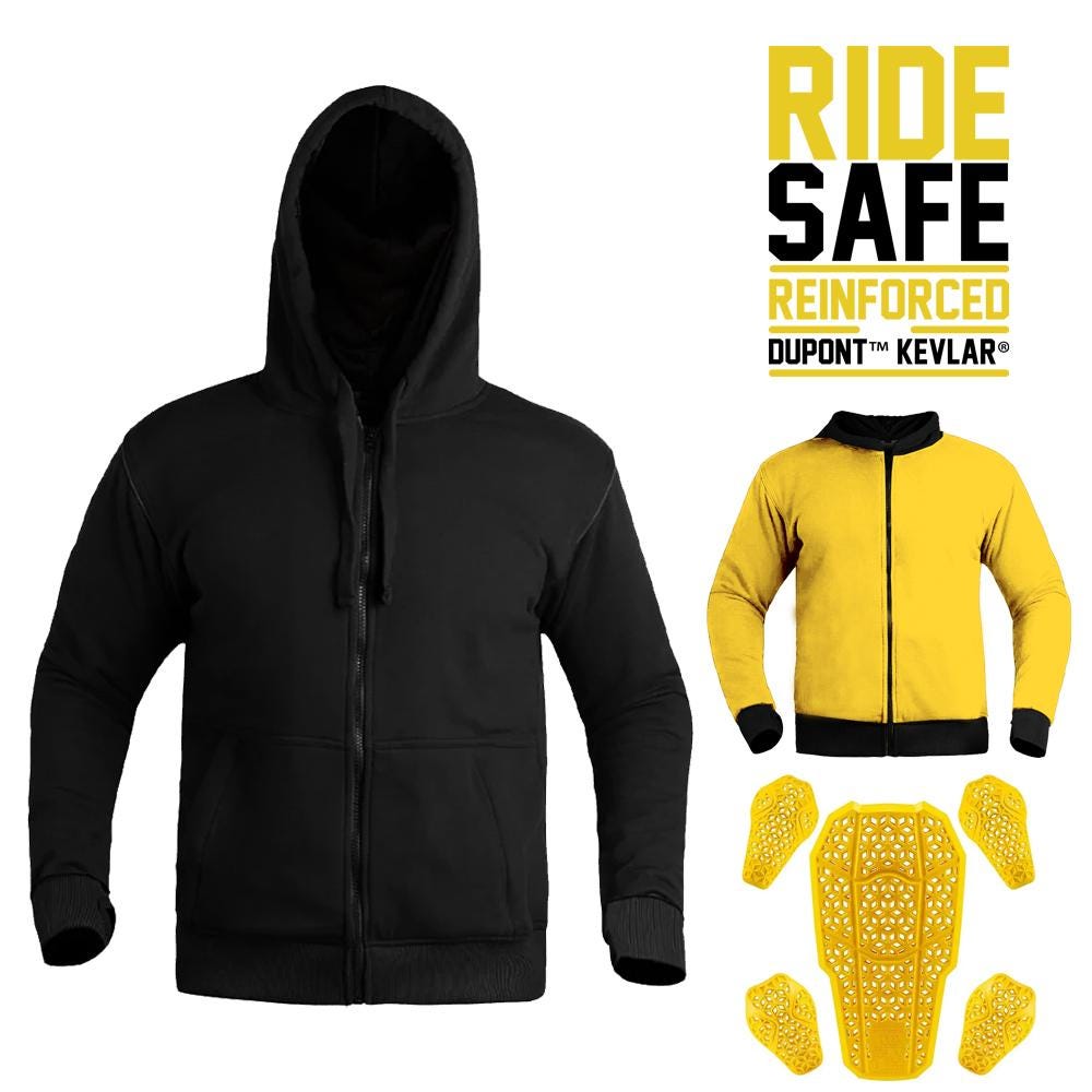 Mens Kevlar Lined Motorcycle Hoodie Protective Biker Hoodie with Level 2 Armor Riding Gear for Safety and Comfort