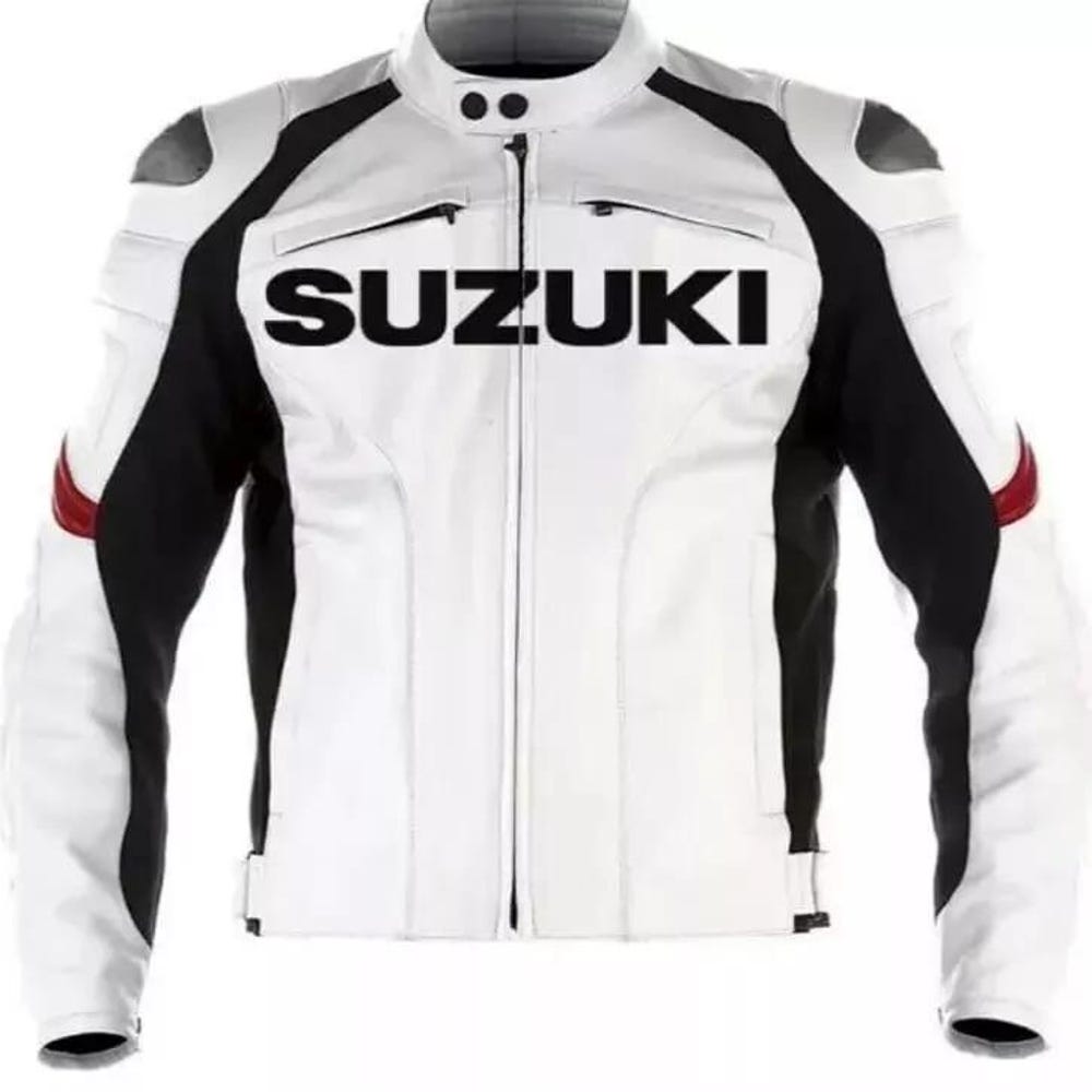 Men’s New Suzuki GSXR White Motorcycle Riding Gear Genuine Cowhide Leather Biker Racing Jacket