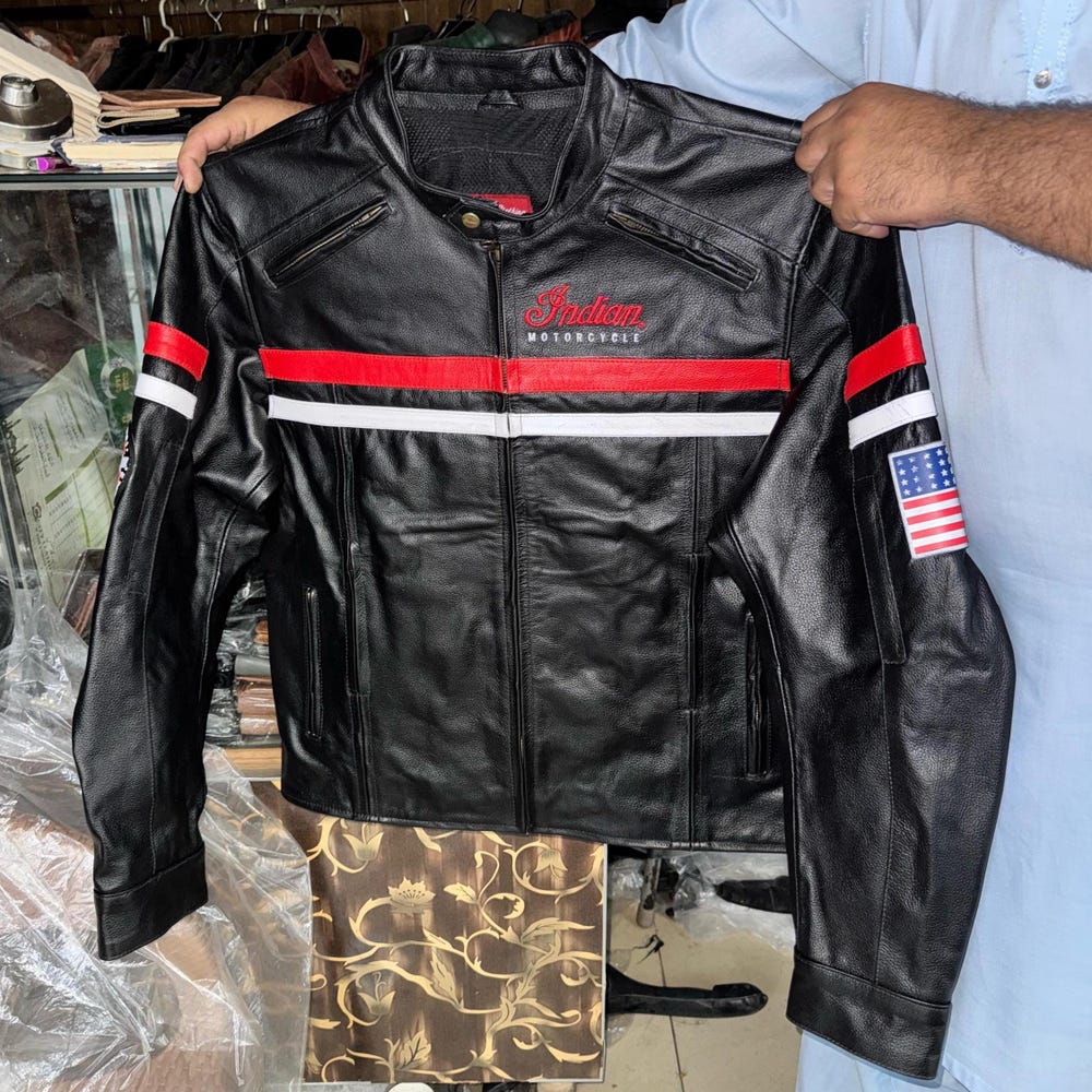 Men’s Indian Black Freeway Motorbike Jacket Real Cow Leather Motorcycle Jacket