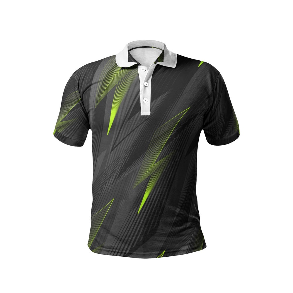 Men’s Black All-Over Lightning Print Polo Shirts (Regular and plus sizes)