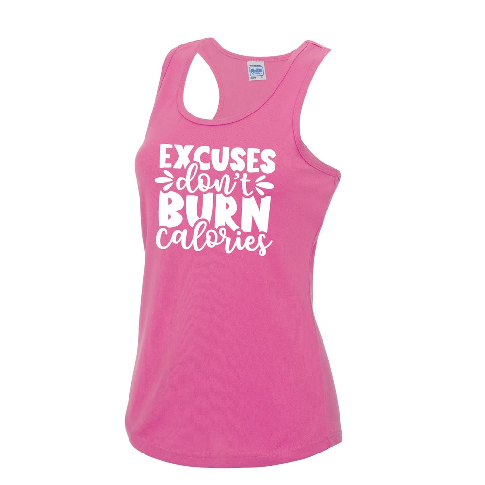Womens Gym Polyester Tank Top Workout Top Funny Gym Vest Ladies Gym Vest Weightlifting Shirt Fitness Vest Excuses Dont Burn Calories