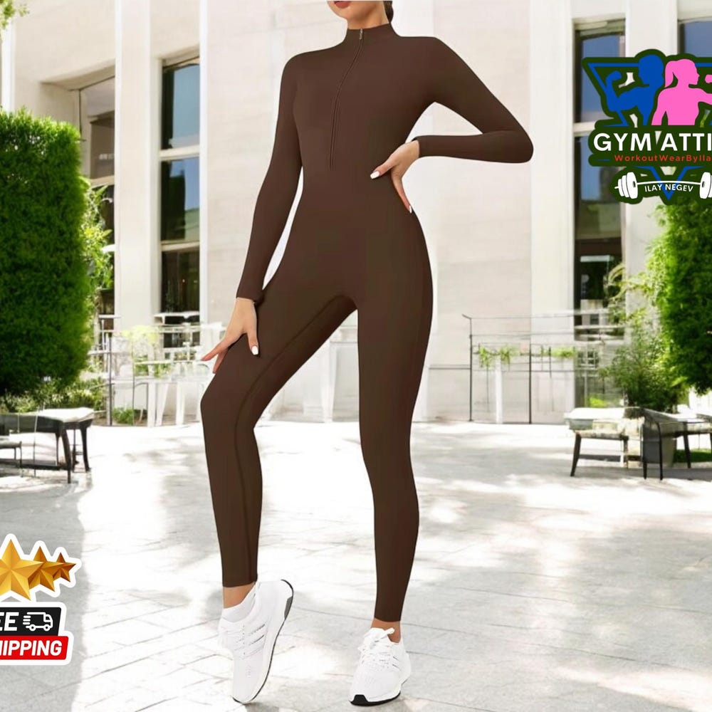 Women’s Yoga Jumpsuit | Long Sleeve Workout Bodysuit | Zipper Gym Suit | Athletic Fitness Overalls | Stretch Sportswear Tracksuit